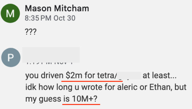 Mason Mitcham has been focusing on email marketing for high ticket coaches and consultants for the better part of 5 years and has driven roughly $12m in revenue for a small group of clients.He has also written dozens of winning ads, managed teams of writers, and acted as the copy chief or creative director for coaches and agencies running or managing at least $100k / month + in adspend.The results?✅ 10+ applications from a single email✅ $60K in a single week tracked from email✅ Workshops filled with 100+ people attending from email✅ $150k in a month from email✅ $5k - $25k revenue generated per campaign✅ 50% of applications coming from email✅ 10+ Low-Ticket Offers sold from email per dayIf you want more from your list, book some time at the calendar on this page, answer our brief questions (so I can better help you) and we'll be in touch!